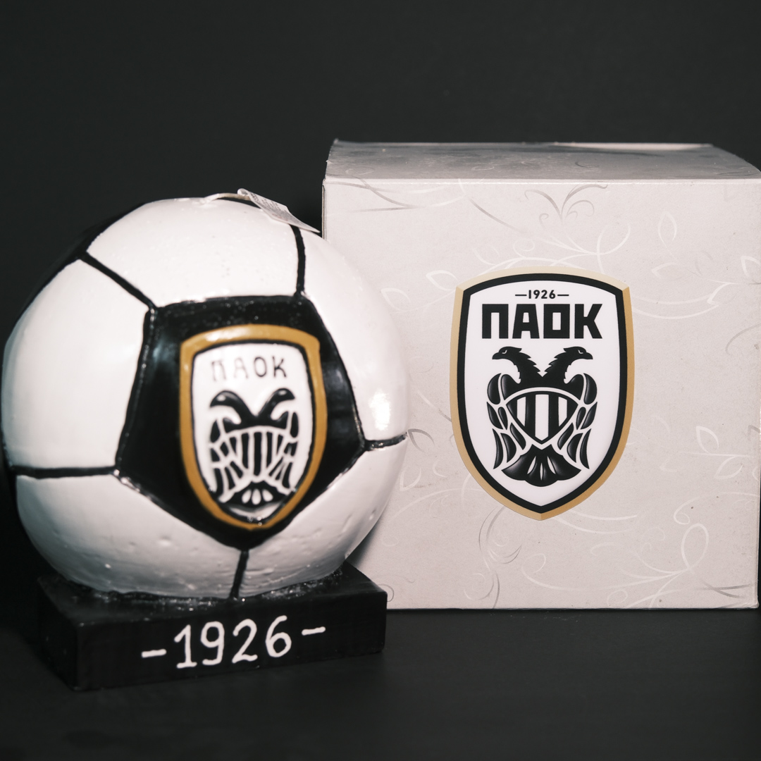 Ένα εντυπωσιακό κερί σε σχήμα ποδοσφαιρικής μπάλας, ιδανικό για κάθε φανατικό φίλο του ΠΑΟΚ.