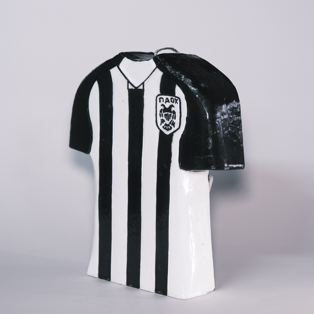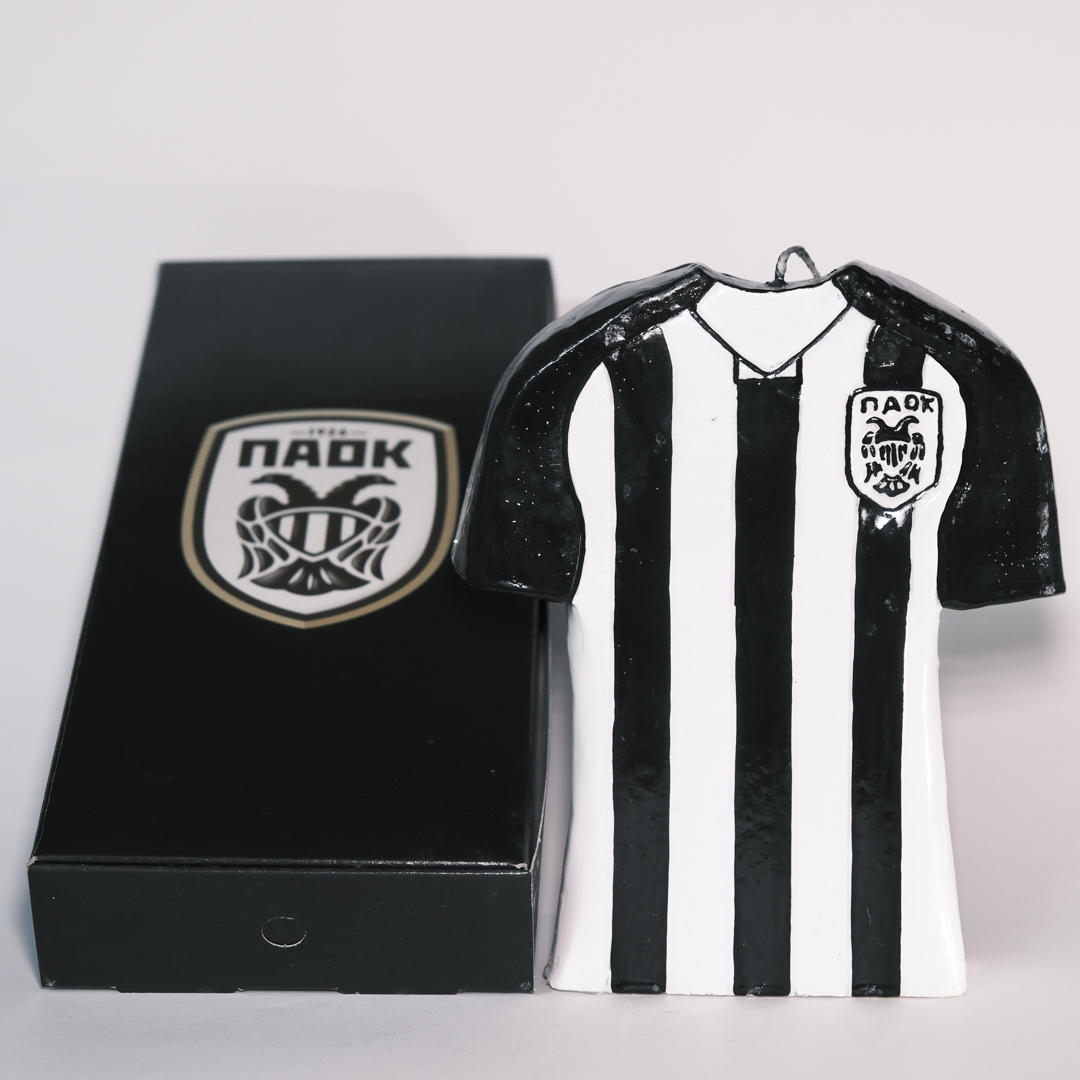 Ένα εντυπωσιακό κερί σε σχήμα φανέλας του ΠΑΟΚ, ιδανικό για κάθε φανατικό της ομάδας.