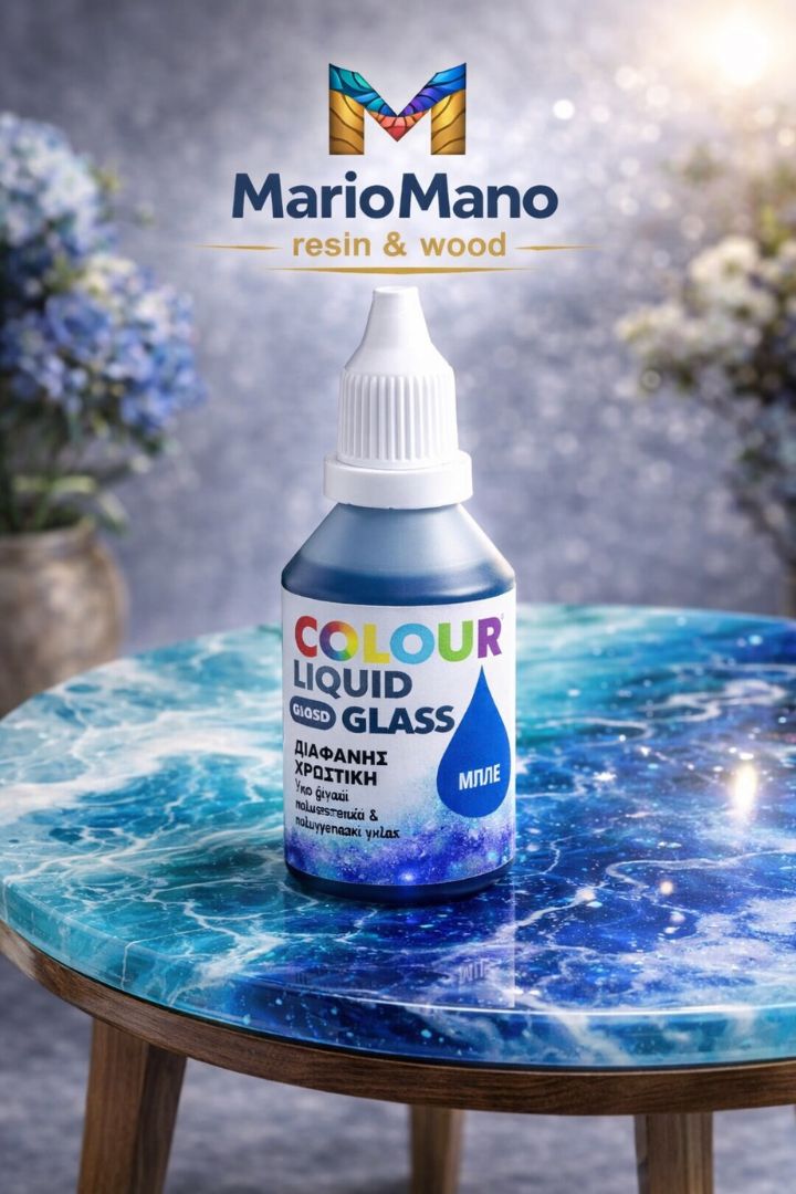 Όταν φτιάχνω κύματα ή θάλασσα με ρητίνη υγρού γυαλιού, ξεκινάω πάντα με πολύ μικρή ποσότητα μπλε χρωστικής και προσθέτω σταδιακά μέχρι να πετύχω το βάθος του χρώματος που θέλω. Έτσι κρατάω τη ρητίνη καθαρή και το αποτέλεσμα πιο φυσικό.