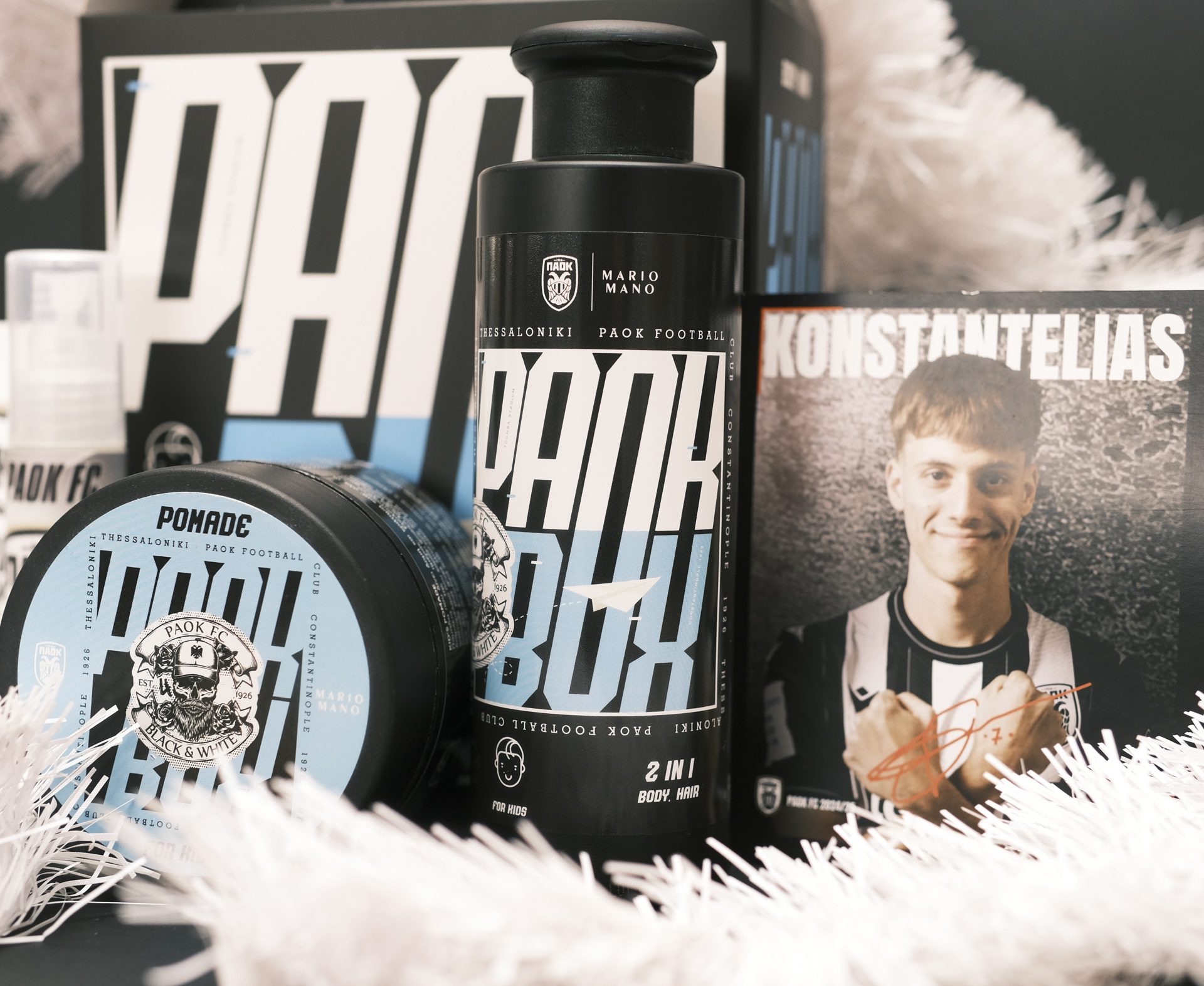 Σχεδιασμένο για να συνδυάζει καθημερινή φροντίδα, στυλ και την αυθεντική εμπειρία της ομάδας, μέσα σε ένα μοναδικό κουτί γεμάτο ΠΑΟΚ.
